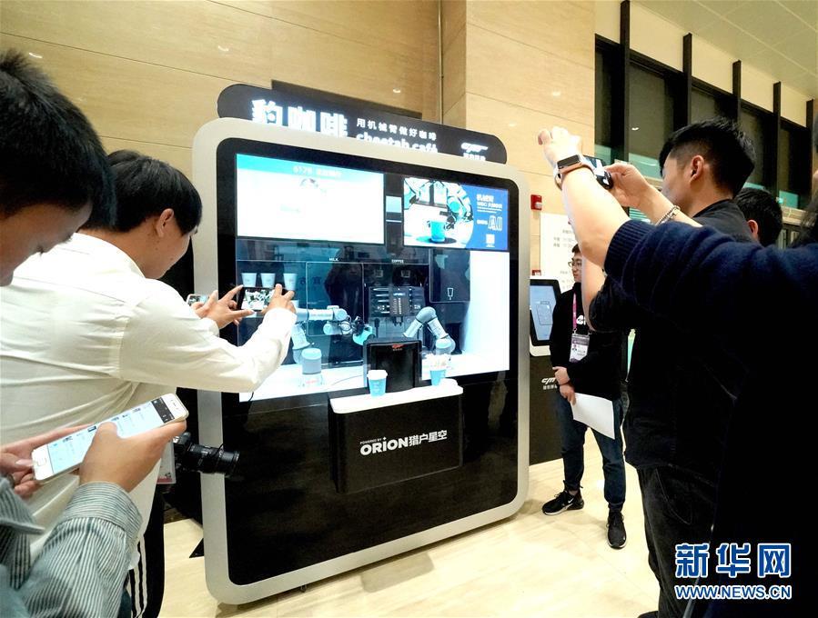 11月4日,媒體記者在首屆中國國際進(jìn)口博覽會(huì)新聞中心拍攝無人咖啡亭。 新華社記者陳建力攝