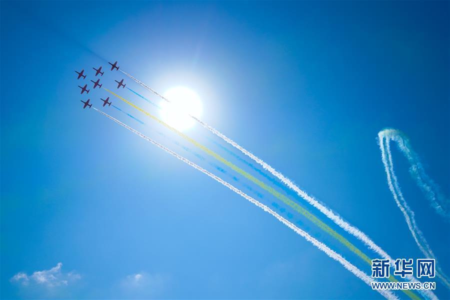 11月6日,中國空軍八一飛行表演隊(duì)在航展現(xiàn)場進(jìn)行飛行表演。當(dāng)日,第十二屆中國國際航空航天博覽會在珠海開幕。 新華社記者楊光攝