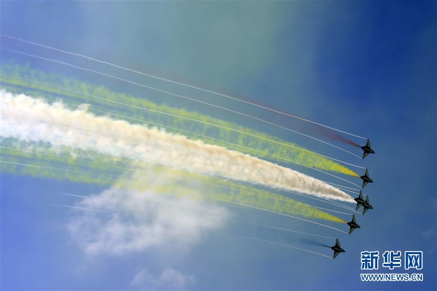 11月6日,中國空軍八一飛行表演隊(duì)在航展現(xiàn)場進(jìn)行飛行表演。當(dāng)日,第十二屆中國國際航空航天博覽會在珠海開幕。 新華社記者鄧華攝