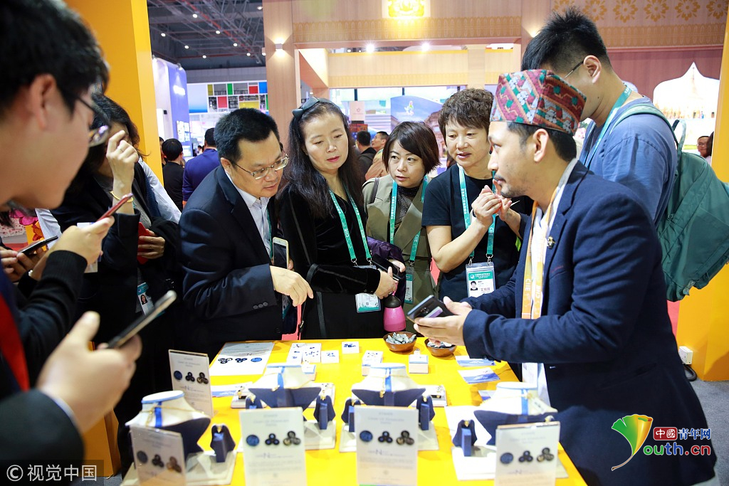 2018年11月6日,上海,首屆中國國際進口博覽會國家展上,共有82個國家、3個國際組織設(shè)立了71個展臺。尼泊爾館。視覺中國