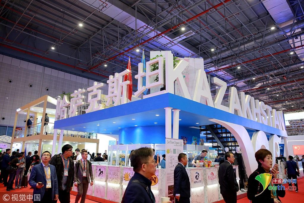 2018年11月6日,上海,首屆中國(guó)國(guó)際進(jìn)口博覽會(huì)國(guó)家展上,共有82個(gè)國(guó)家、3個(gè)國(guó)際組織設(shè)立了71個(gè)展臺(tái)。哈薩克斯坦館。視覺中國(guó)