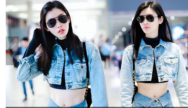奚夢(mèng)瑤一身帥氣牛仔裝 露細(xì)腰長腿顯 ...