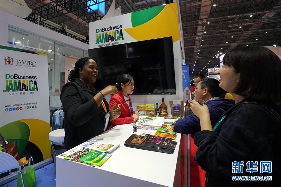 11月8日,在加勒比地區(qū)國(guó)家展區(qū)牙買(mǎi)加展臺(tái),工作人員請(qǐng)參觀者品嘗本國(guó)特色食品。 中國(guó)國(guó)際進(jìn)口博覽會(huì)11月5日在上海開(kāi)幕。國(guó)家貿(mào)易投資綜合展(國(guó)家展)是中國(guó)國(guó)際進(jìn)口博覽會(huì)的重要內(nèi)容,共有82個(gè)國(guó)家、3個(gè)國(guó)際組織設(shè)立71個(gè)展臺(tái)。 新華社記者 程麗 攝