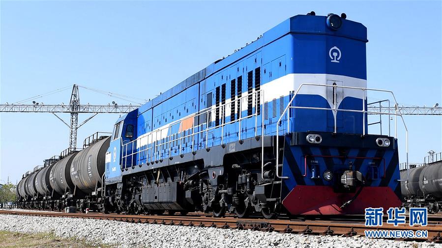 一列火車緩緩駛出欽州港(2017年12月19日攝)。新華社記者 張愛(ài)林 攝