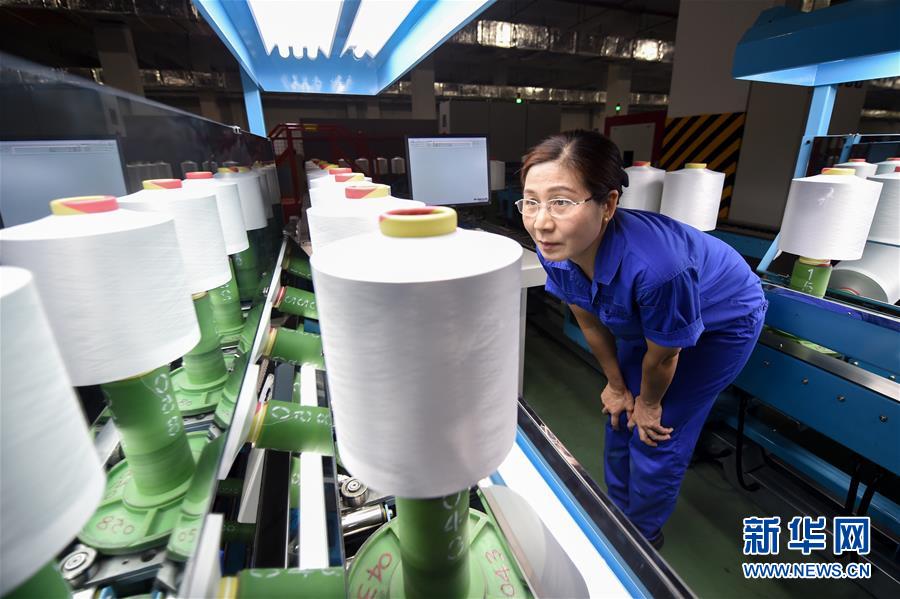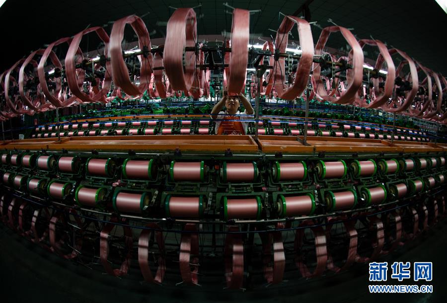 蘇州市吳江區(qū)盛澤鎮(zhèn)一家絲綢公司的工人在車間進行絡絲作業(yè)(2017年5月20日攝)。 新華社記者 李響 攝