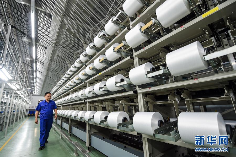 工作人員在位于蘇州市吳江區(qū)的恒力集團化纖智能化加彈車間進行巡檢作業(yè)(10月31日攝)。 新華社記者 李博 攝