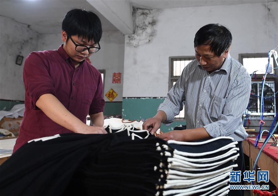 在蘇州市吳江區(qū)七都鎮(zhèn)開弦弓村,“90后”村民姚凌超(左)和父親姚玉坤在自家針織衫加工作坊里整理產品(10月23日攝)。近年來,開弦弓村形成了化纖紡織、針織衫編織和水產養(yǎng)殖三大產業(yè),2017年村集體收入268萬元,農民人均可支配收入3萬多元。 新華社記者 季春鵬 攝