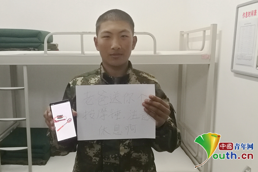 “班長總說我太瘦,買罐蛋白粉,我要快點變強壯。”武警北京總隊執(zhí)勤第二支隊供圖。