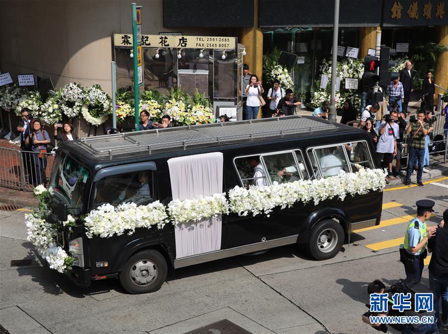 11月13日,金庸的靈車(chē)緩緩駛離殯儀館。 當(dāng)日,著名作家金庸在香港殯儀館出殯。 金庸10月30日在香港逝世,享年94歲。 新華社記者 吳曉初 攝