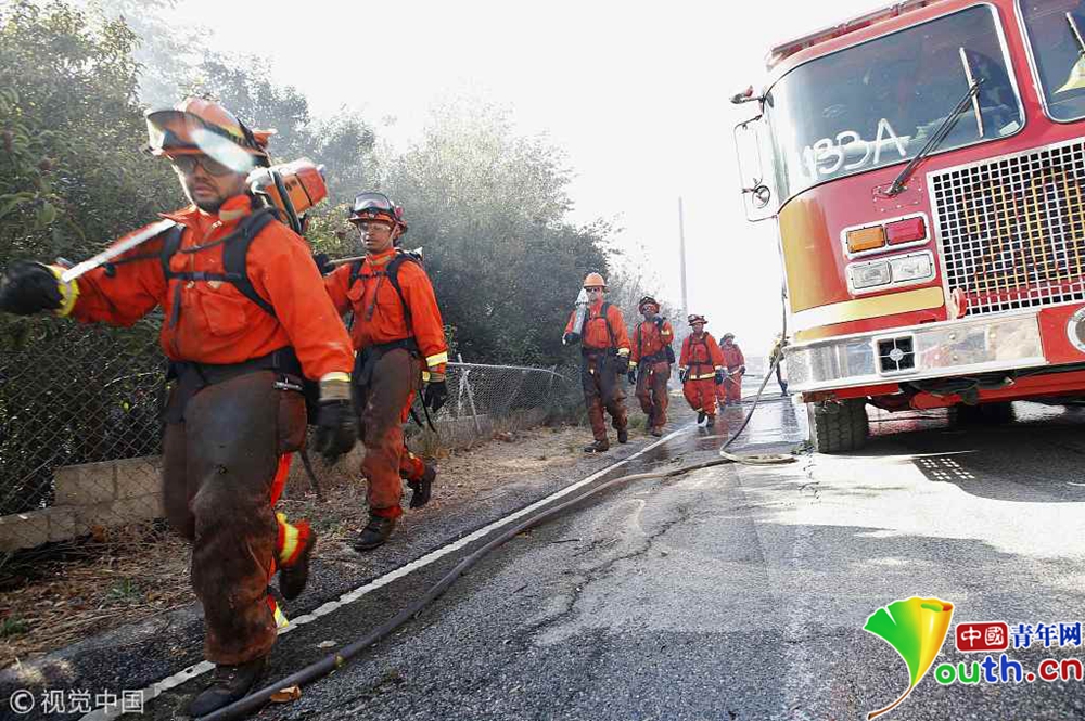 當(dāng)?shù)貢r間11月9日下午,美國加利福尼亞州南部文圖拉郡(Ventura County)等地熊熊山火已延燒逾萬英畝,濃煙遮天蔽日。