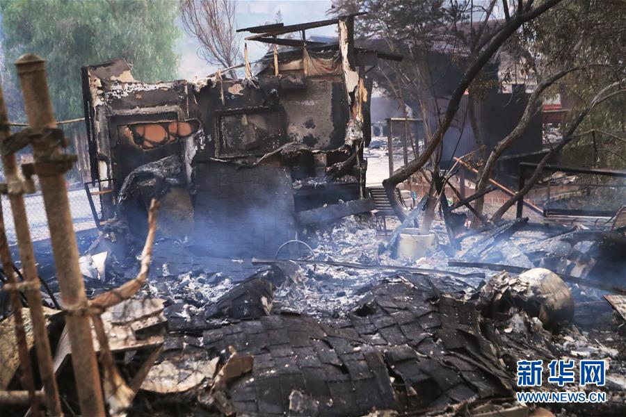 這是11月19日在美國加利福尼亞州比尤特縣天堂鎮(zhèn)拍攝的山火廢墟。新華社記者吳曉凌攝