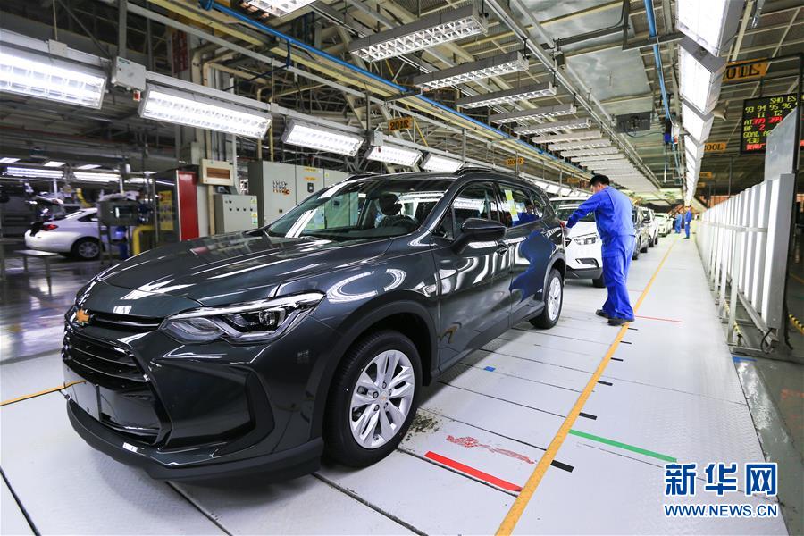 在上汽通用東岳汽車有限公司的總裝車間,工作人員對(duì)車輛進(jìn)行檢查(11月15日攝)。新華社記者王南攝