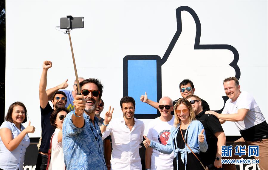 8月11日,在美國舊金山灣區(qū),參加“臉書節(jié)”的游客在臉書園區(qū)標(biāo)志前合影。當(dāng)日,舊金山灣區(qū)臉書園區(qū)舉行“臉書節(jié)”,人們在活動(dòng)中欣賞文藝表演,品嘗美食,乘坐游樂設(shè)施等,活動(dòng)收入將捐給慈善團(tuán)體。新華社記者吳曉凌攝