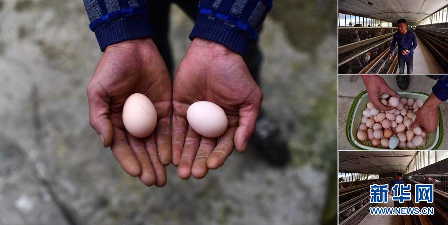 拼版照片:左圖為貧困戶李先強(qiáng)手捧養(yǎng)殖合作社生產(chǎn)的雞蛋(11月19日攝);右圖為李先強(qiáng)在雞舍里撿雞蛋(照片均攝于11月19日)。李先強(qiáng)是融水苗族自治縣香粉鄉(xiāng)香粉村的貧困戶,從2016年開始,他和15個貧困戶一起發(fā)展土雞養(yǎng)殖。目前合作社養(yǎng)有3000多只雞,年產(chǎn)雞蛋1萬多斤。 廣西融水苗族自治縣是國家扶貧工作重點(diǎn)縣,全縣“九山半水半分田”,生活生產(chǎn)環(huán)境較為惡劣,脫貧攻堅任務(wù)艱巨,目前還有7.68萬貧困人口。面對經(jīng)濟(jì)發(fā)展落后、貧困面廣且程度深的現(xiàn)狀,當(dāng)?shù)匕衙撠毠耘c創(chuàng)新產(chǎn)業(yè)扶持相結(jié)合,依托生態(tài)資源優(yōu)勢,實(shí)施“特色產(chǎn)業(yè)富民行動”,通過發(fā)展特色民族旅游、林下經(jīng)濟(jì)和特色養(yǎng)殖業(yè)等扶貧產(chǎn)業(yè),帶動貧困群眾依靠勤勞的雙手,拔窮根摘窮帽,實(shí)現(xiàn)脫貧致富。據(jù)了解,目前全縣貧困戶參與特色產(chǎn)業(yè)發(fā)展的有2.9萬戶,扶貧產(chǎn)業(yè)覆蓋率達(dá)95%。 新華社記者 黃孝邦 攝