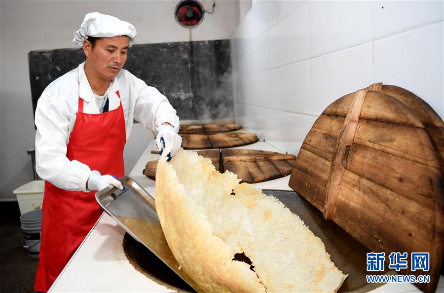 11月22日,汪明祥在鍋巴廠里加工鍋巴。新華社記者劉軍喜攝