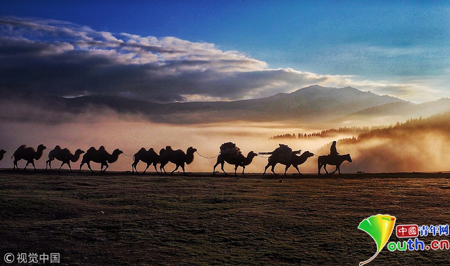 天氣逐漸變冷,哈薩克族牧民浩浩蕩蕩向秋牧場遷徙。