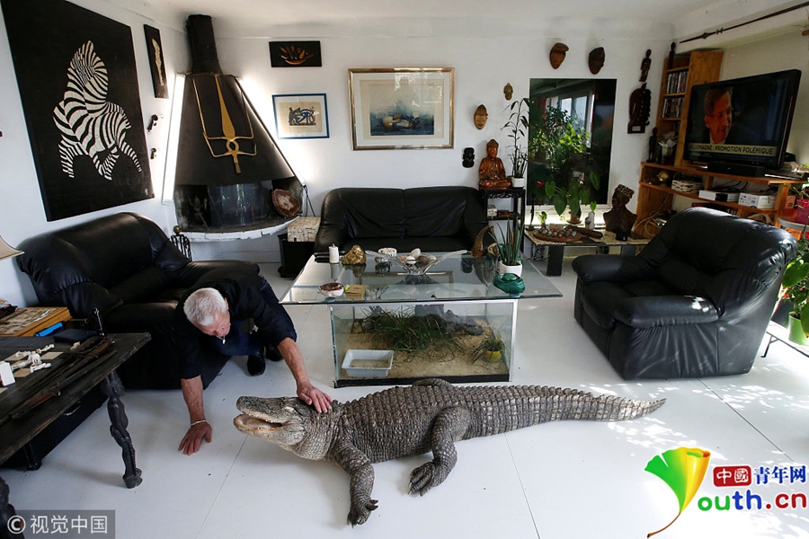 中國青年網(wǎng)北京9月21日電 當(dāng)?shù)貢r(shí)間2018年9月19日,法國67歲的法國男子Philippe Gillet與400多只爬行動(dòng)物生活在一起,有鱷魚、蜥蜴、眼鏡蛇等等。