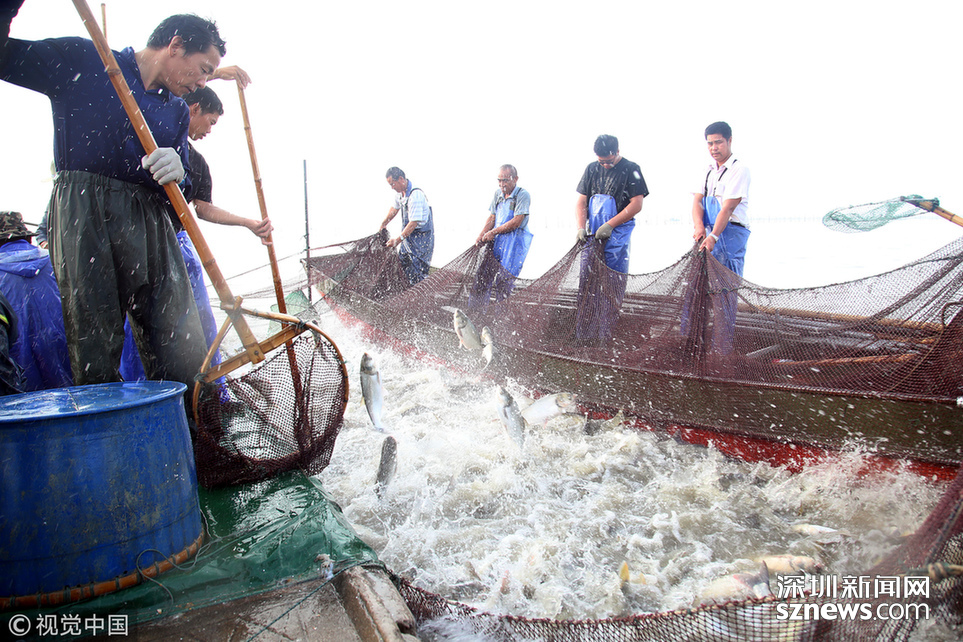 深圳新聞網(wǎng)訊 2018年6月26日,江蘇省常州市嘉澤鎮(zhèn)捕撈村的漁民組織夏季捕撈,一網(wǎng)魚達五萬余斤,以鰱魚為主,供應市場需求。夏捕的魚價較平時有所上漲,漁民粗略估計可增收上萬余元。