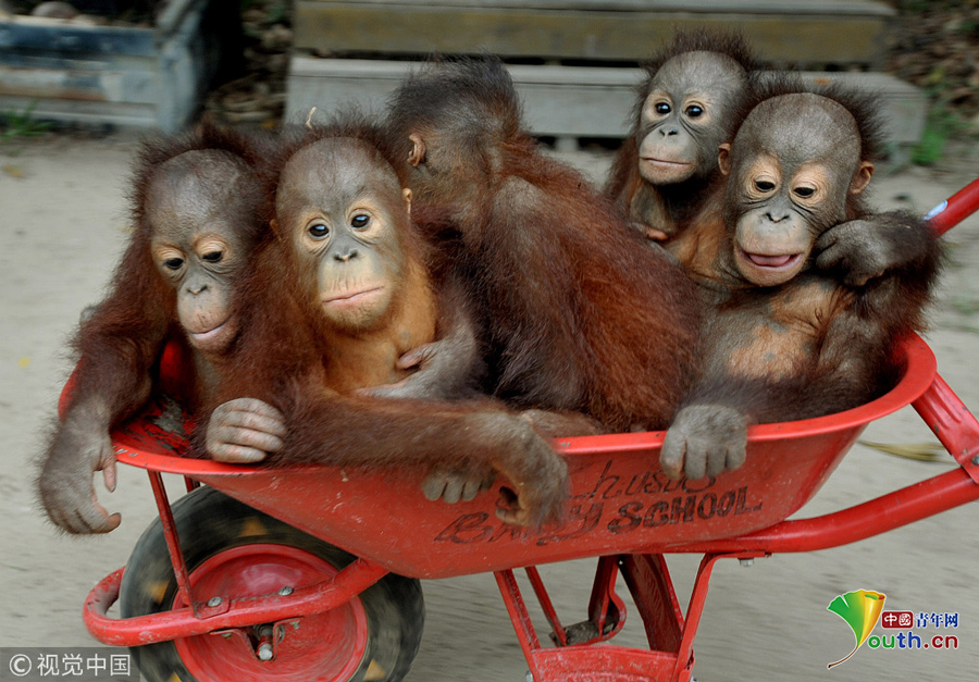 印尼動(dòng)物救援中心里 猩猩寶寶擠“校車(chē)”“上學(xué)”超萌