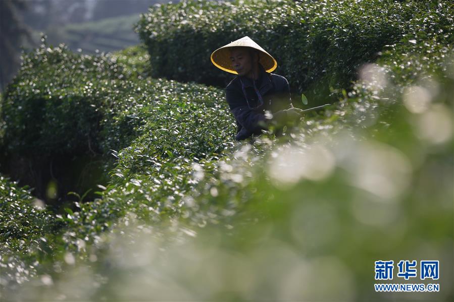 11月22日,在廣西柳州三江侗族自治縣八江鎮(zhèn)布央村,村民莫景凡在修剪茶樹。