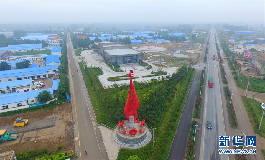 這是2017年9月5日無人機(jī)拍攝的位于河南蘭考縣堌陽鎮(zhèn)的中國民族樂器博覽中心及其周邊的樂器廠廠房。新華社記者馮大鵬攝