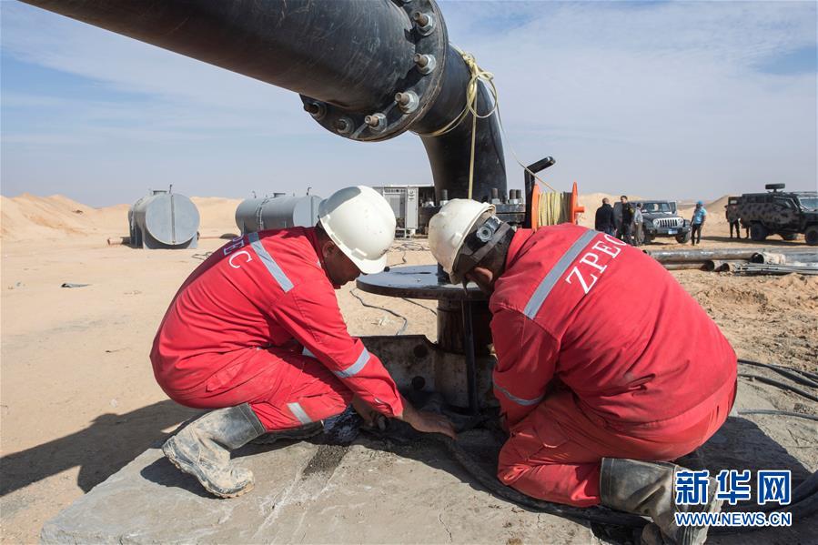 11月20日,在埃及明亞省,中國(guó)中曼石油公司的工人在鉆井現(xiàn)場(chǎng)作業(yè)。 2017年,中國(guó)中曼石油公司與阿聯(lián)酋海灣集團(tuán)簽訂合同,為該集團(tuán)在埃及沙漠中的大型農(nóng)業(yè)項(xiàng)目鉆探300口水井。根據(jù)合同,中曼石油將先期完成30口井的試鉆探,剩余水井將以每月7口的速度交付。目前有超過(guò)200名工人在鉆井現(xiàn)場(chǎng)作業(yè),大部分是埃及本地人。 新華社記者李碧念攝