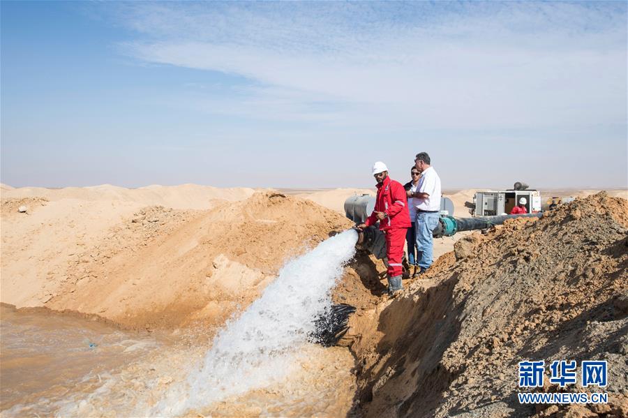 11月21日,在埃及明亞省,地下水從水管里噴涌而出。 2017年,中國(guó)中曼石油公司與阿聯(lián)酋海灣集團(tuán)簽訂合同,為該集團(tuán)在埃及沙漠中的大型農(nóng)業(yè)項(xiàng)目鉆探300口水井。根據(jù)合同,中曼石油將先期完成30口井的試鉆探,剩余水井將以每月7口的速度交付。目前有超過(guò)200名工人在鉆井現(xiàn)場(chǎng)作業(yè),大部分是埃及本地人。 新華社記者李碧念攝