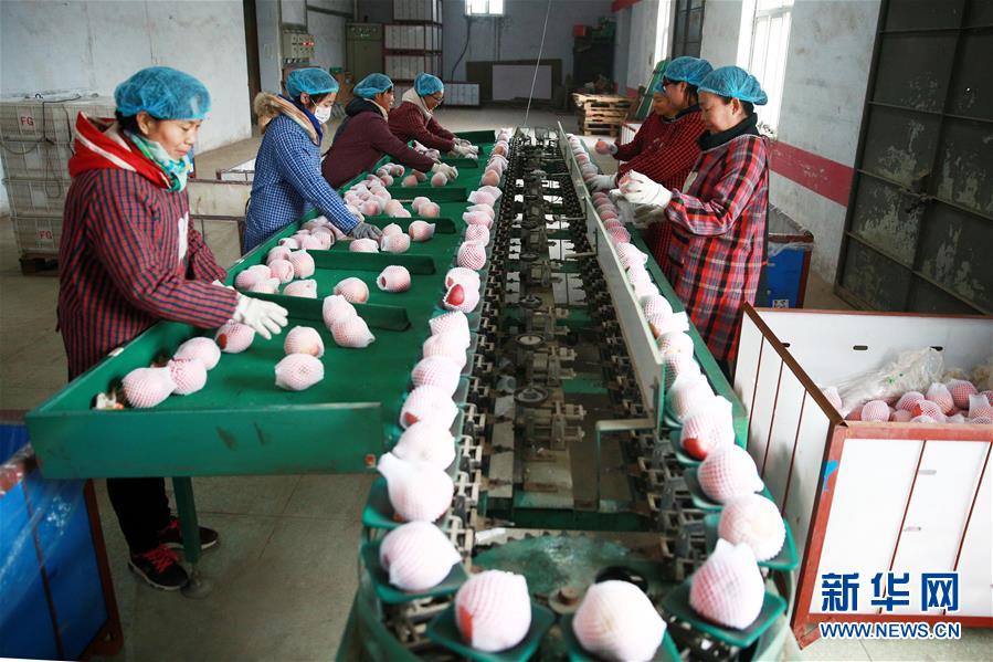 11月26日,河北省內(nèi)丘縣一扶貧龍頭企業(yè)的員工在分揀蘋(píng)果。 近年來(lái),河北省內(nèi)丘縣不斷推進(jìn)產(chǎn)業(yè)扶貧,探索“龍頭企業(yè)+貧困戶”利益鏈接機(jī)制,通過(guò)扶貧資金入股、進(jìn)廠打工等方式,提高貧困戶的產(chǎn)業(yè)參與度和受益度,帶動(dòng)1300余戶貧困戶實(shí)現(xiàn)增收。 新華社記者 牟宇 攝