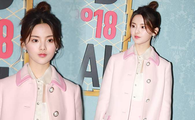 楊超越穿粉色大衣嫻靜優(yōu)雅 扎丸子頭 ...