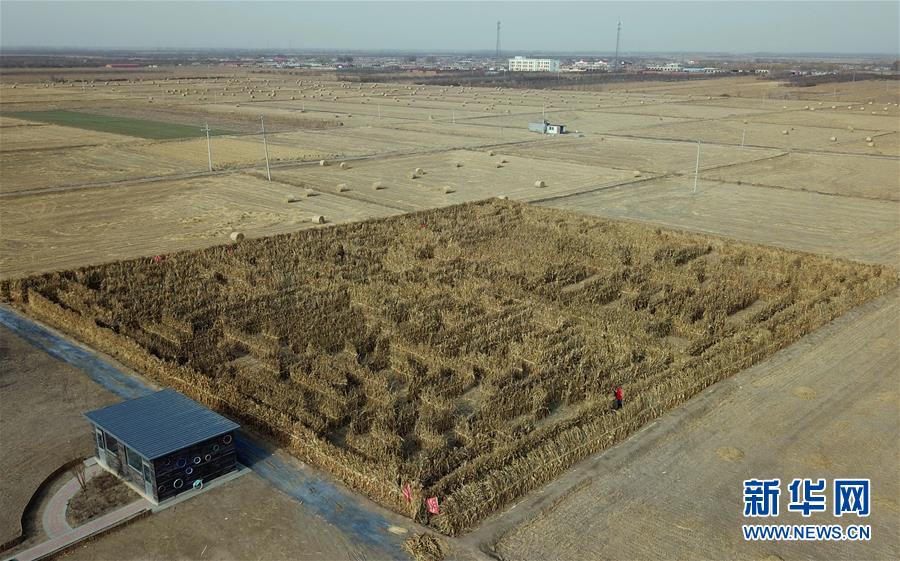 近日,一座占地10畝、用玉米秸稈搭建的迷宮亮相河北省昌黎縣劉臺莊鎮(zhèn)白棗林村收完莊稼的田間,吸引游客前來體驗。