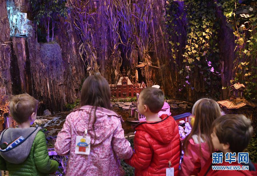 11月27日,在美國(guó)首都華盛頓國(guó)家植物園,觀眾在迷你火車(chē)展覽上參觀。