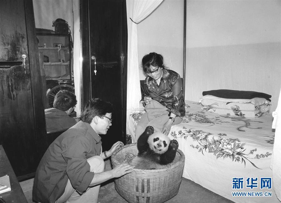 新華社記者金勖琪1984年拍攝的四川平武縣林業(yè)局的助理工程師鐘肇敏(左)一家把一頭受病餓威脅的熊貓幼仔“龍龍”收留在家里精心喂養(yǎng)。大熊貓,古老的物種,世界級“萌寵”。有一位84歲的老人,四十年前曾身挎相機與熊貓親密接觸六年多,公開發(fā)表了一千多張熊貓照片,把熊貓介紹給全球的讀者,被國內(nèi)外的朋友親切地稱為“熊貓小姐”。她就是金勖琪,新華社第一代熊貓攝影師。新華社記者 張超群 攝
