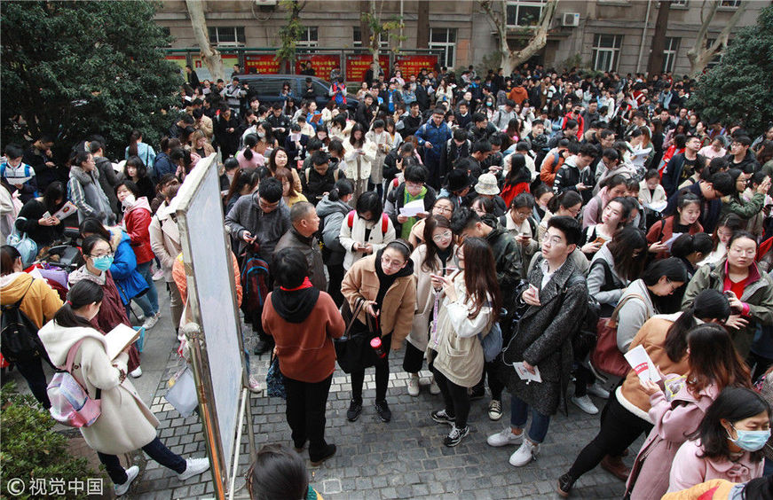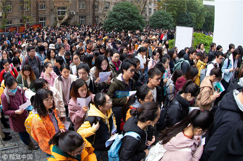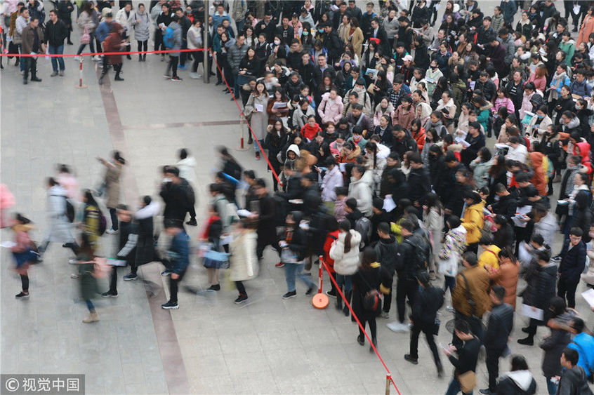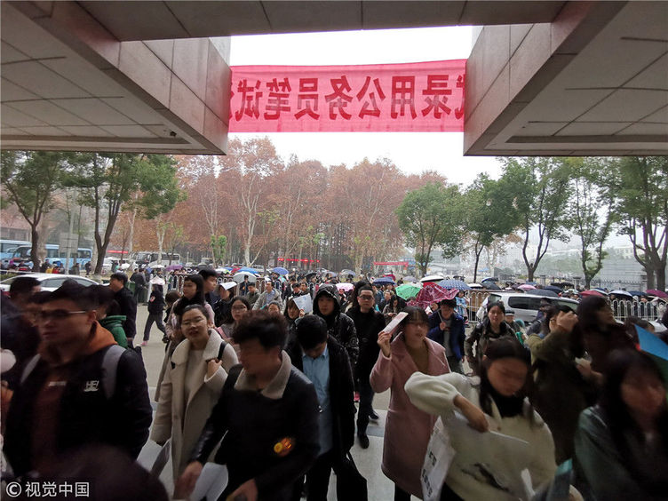 2018年12月2日,湖北武漢一公務(wù)員考點,密密麻麻的考生進向考場。當(dāng)日,2019年度中央機關(guān)及其直屬機構(gòu)公務(wù)員招考筆試開考。楚林/視覺中國