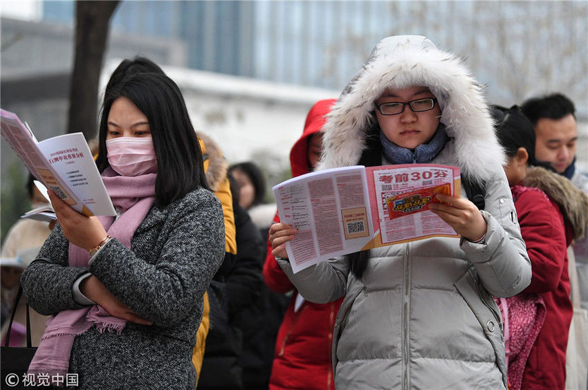 2018年12月2日,考生在南京林業(yè)大學(xué)考點進場參加考試。蘇陽/視覺中國