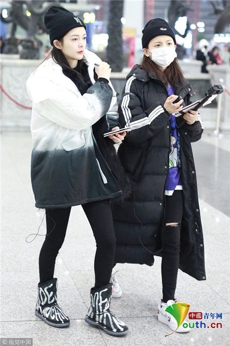 2018年12月3日,北京,“火箭少女101”全體成員現(xiàn)身機(jī)場前往國外錄制團(tuán)總綜。其中孟美岐戴著墨鏡,一身全黑運(yùn)動(dòng)裝扮,大步流星氣場超強(qiáng),楊蕓晴、yamy、楊超越等成員緊隨其后,大家還一起在機(jī)場玩起自拍,好不歡樂。