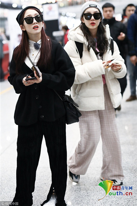 2018年12月3日,北京,“火箭少女101”全體成員現(xiàn)身機場前往國外錄制團總綜。其中孟美岐戴著墨鏡,一身全黑運動裝扮,大步流星氣場超強,楊蕓晴、yamy、楊超越等成員緊隨其后,大家還一起在機場玩起自拍,好不歡樂。