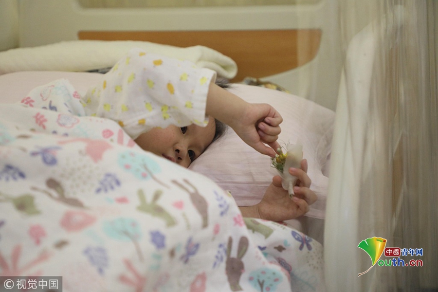 有人說,每個大病患兒都是折翼的天使。經(jīng)過兩年多的治療后,小婭馨變得越來越堅強懂事了,對自己的病情也有了基本清晰的認知。11月16日,小婭馨接受化療時靜脈上被插上了長長的管子,疼的嚎啕大哭,爸爸袁東方摟著她痛哭流涕:“女兒不怕!打完針病就好了,你就能像正常人一樣上學、戀愛、結婚了!”。治療結束后,小婭馨天真無邪地說“爸爸,長大了才可以結婚,那需要好久,我害怕等不到那一天,要不現(xiàn)在咱們倆結一次婚吧!”。