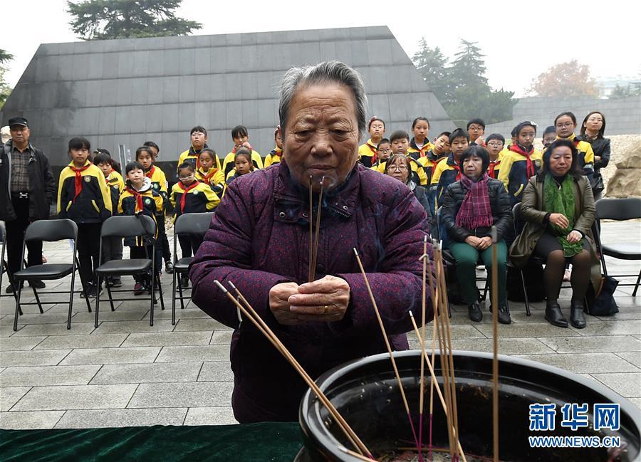 12月3日,南京大屠殺幸存者石秀英焚香祭奠被侵華日軍殺害的親人。 當(dāng)日,在第五個南京大屠殺死難者國家公祭日到來之際,南京大屠殺死難者遺屬家祭活動在侵華日軍南京大屠殺遇難同胞紀(jì)念館正式啟動。首批前來開展家祭活動的南京大屠殺幸存者余昌祥、石秀英老人分別率家屬在紀(jì)念館內(nèi)的死難者名單墻前獻(xiàn)花、敬香、跪拜,并誦讀家信,表達(dá)對親人的哀思。 新華社記者 孫參 攝