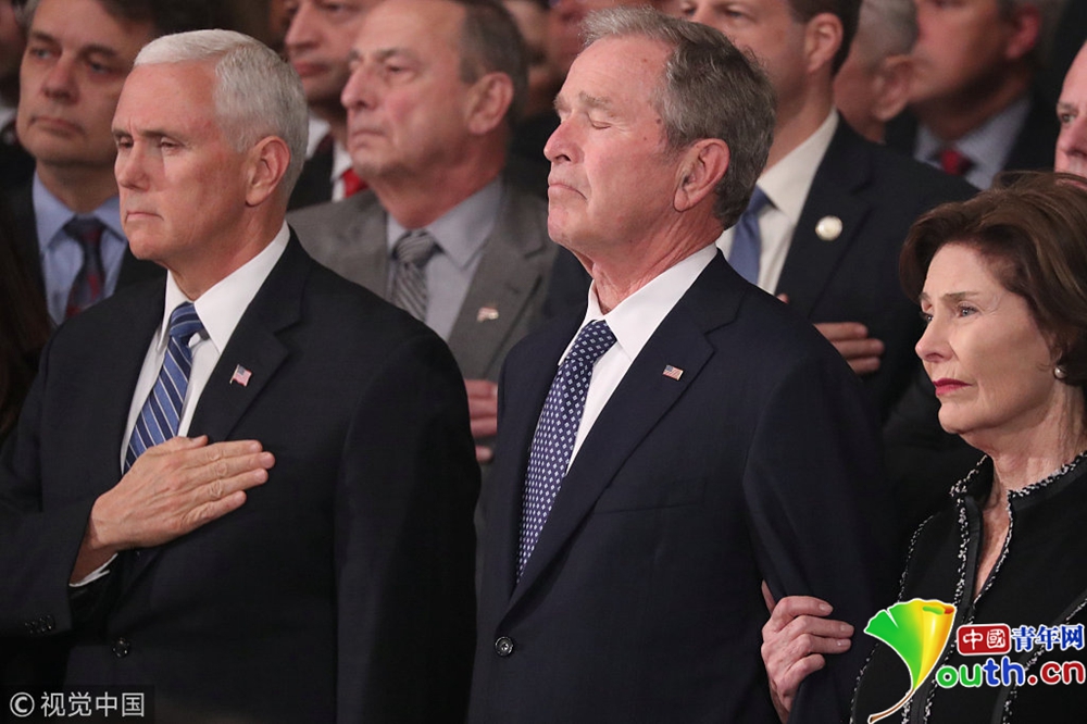 布什家族成員小布什、副總統彭斯等多位政界人士出席儀式。