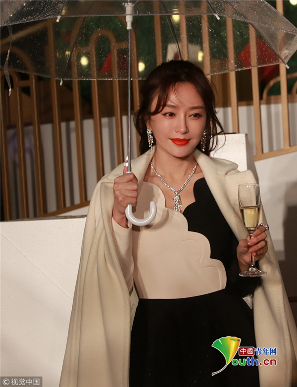 秦嵐撐傘雪膚紅唇美如畫(huà) 優(yōu)雅品香檳 ...
