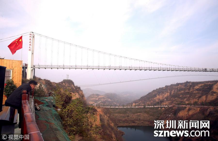 深圳新聞網訊 河南三門峽,位于陜州地坑院景區(qū)玻璃天橋。該項目橋梁總投資2600萬元,全長368米,寬3米,高108米,是目前河南省內最長的玻璃天橋,還將陸續(xù)對外開放夜景效果、聲光效果以及更多的體驗效果,逐步打造成整個豫西地區(qū)乃至全省的旅游打卡新地標。