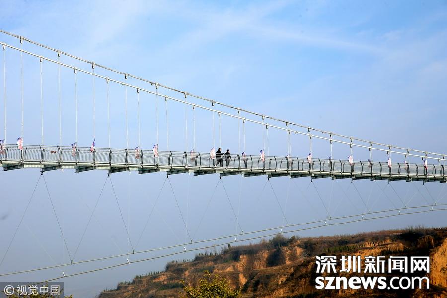 實拍地坑院景區(qū)玻璃天橋 全長318米高108米