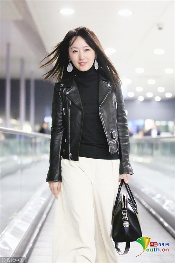 12月9日,上海,楊鈺瑩現(xiàn)身上海虹橋機場,她身著黑色皮衣的她搭配白色直筒褲,手提大牌包優(yōu)雅知性,長發(fā)披肩溫柔甜美似少女,見跟拍主動揮手示好,保養(yǎng)得當?shù)乃笮阊┌准∧w,不顯年紀!