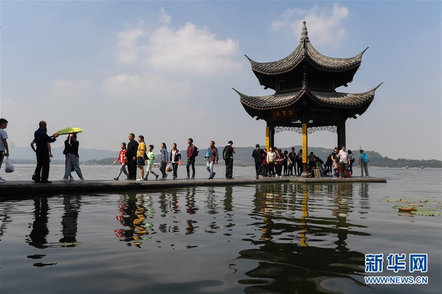 10月7日,游客在杭州西湖風景區(qū)集賢亭游覽。當日是國慶黃金周最后一天,眾多游客來到杭州西湖景區(qū)觀光游覽,熱度不減。據(jù)杭州市旅游委員會公布的數(shù)據(jù)顯示,從10月1日起截至10月7日12時,國慶七天杭州市各景區(qū)(點)接待游客總量達到1776.14萬人次,其中西湖風景名勝區(qū)管委會所屬公園景點共接待游客452.2萬人次。新華社記者 黃宗治 攝