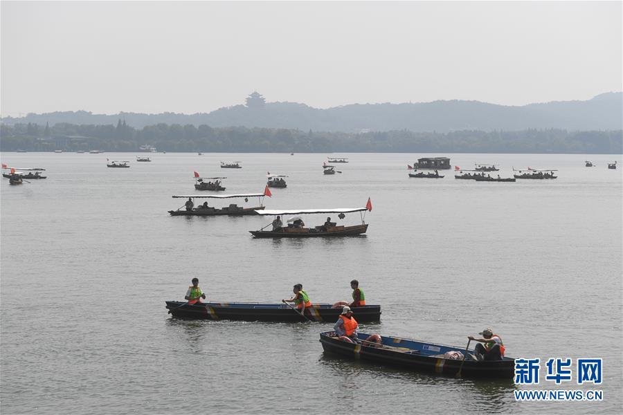 8月14日,游客乘船在西湖游玩(無人機拍攝)?! ⌒氯A社記者 翁忻旸 攝