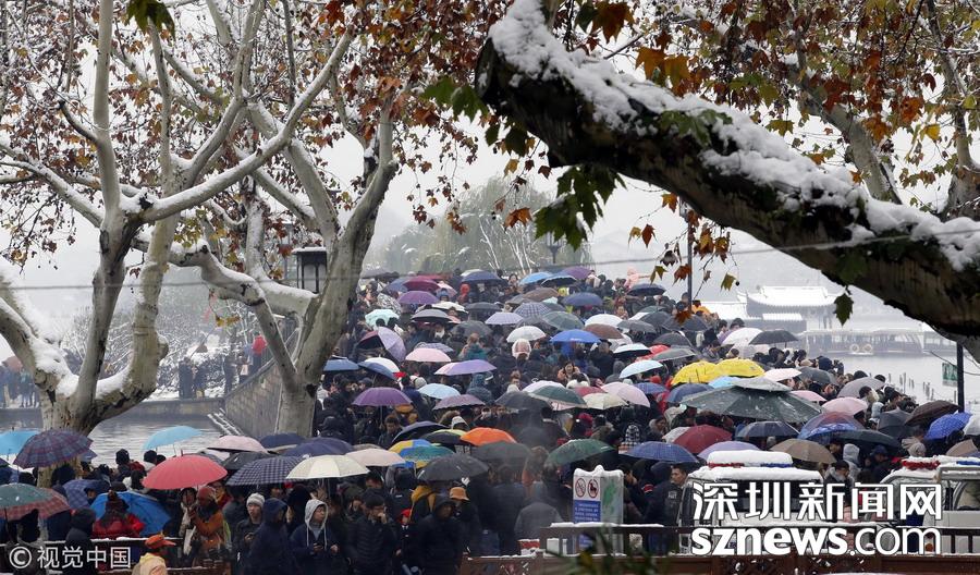 深圳新聞網(wǎng)訊 2018年12月8日,杭州,當日市區(qū)普降大雪,市民和游客扎堆涌入西湖景區(qū),拍攝最美雪景照片以及為自己留影。每次杭州一下雪,斷橋便成為眾多游客欣賞雪景、拍攝雪景的地方,大家都想看看“斷橋殘雪”。游客們扎堆涌入斷橋后,人山人海,讓現(xiàn)場堪比春運場景。因為人太多,雪積不起來,斷橋看不到殘雪。