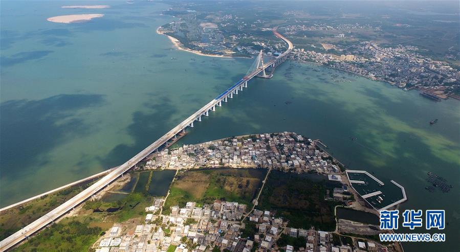 深圳新聞網訊 2018年12月5日,海口,高空航拍橫跨海口北港島的鋪前大橋。 據了解,鋪前大橋是目前國內抗震設防烈度最高、設計基本風速最大,且跨越地震帶活動斷層的跨海大橋,是國內首座跨地質斷裂帶的大型橋梁??偼顿Y約30.1億元,該將在今年年底建成通車,將加快海南自貿港建設而助力。