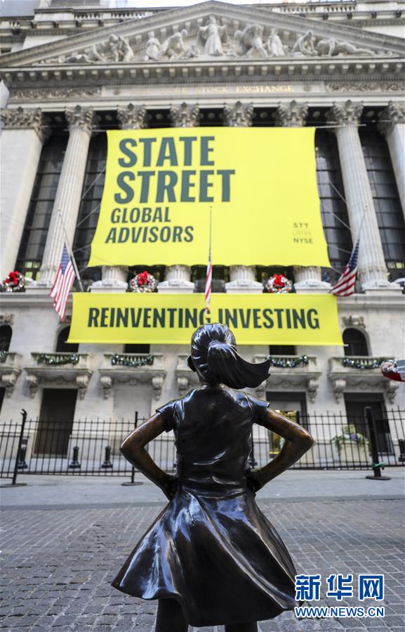 這是12月10日在美國(guó)紐約證券交易所前拍攝的“無(wú)畏女孩”銅像。 新華社記者 王迎 攝