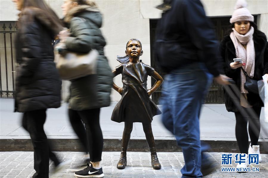 12月10日,在美國(guó)紐約,人們從紐約證券交易所前的“無(wú)畏女孩”銅像旁走過(guò)。 新華社記者 王迎 攝
