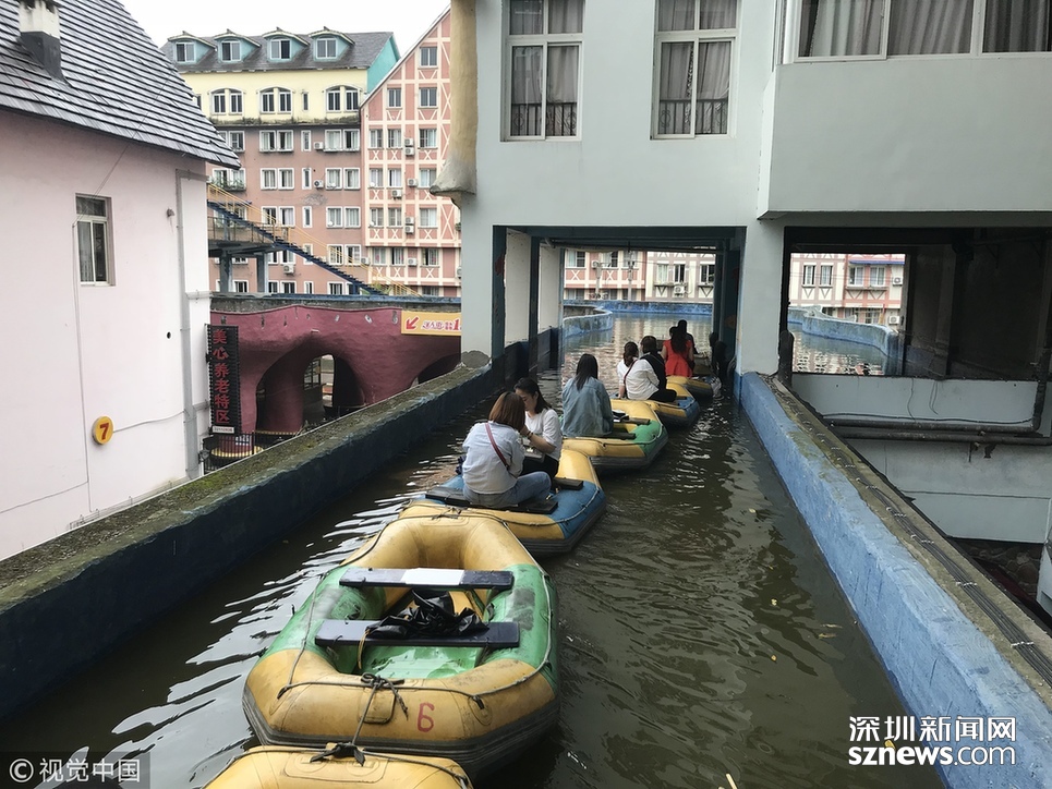 2018年6月20日,重慶涪陵,紅酒小鎮(zhèn)人工運河全長近5公里,2009年開建,先期依梨香溪岸線而建,后期隨著景區(qū)的發(fā)展,運河逐漸拓展為高架橋的“空中運河”,穿樓而過的“室內(nèi)運河”,穿水上樂園而過的“水中運河”。為確保一個水平面,運河見房穿洞,過路搭橋,游客乘坐觀光船或蕩舟其中成為一道獨特的風景線。隨著8D魔幻重慶的不斷走紅,該景區(qū)的網(wǎng)紅運河正受到游客的喜愛與“打卡”。